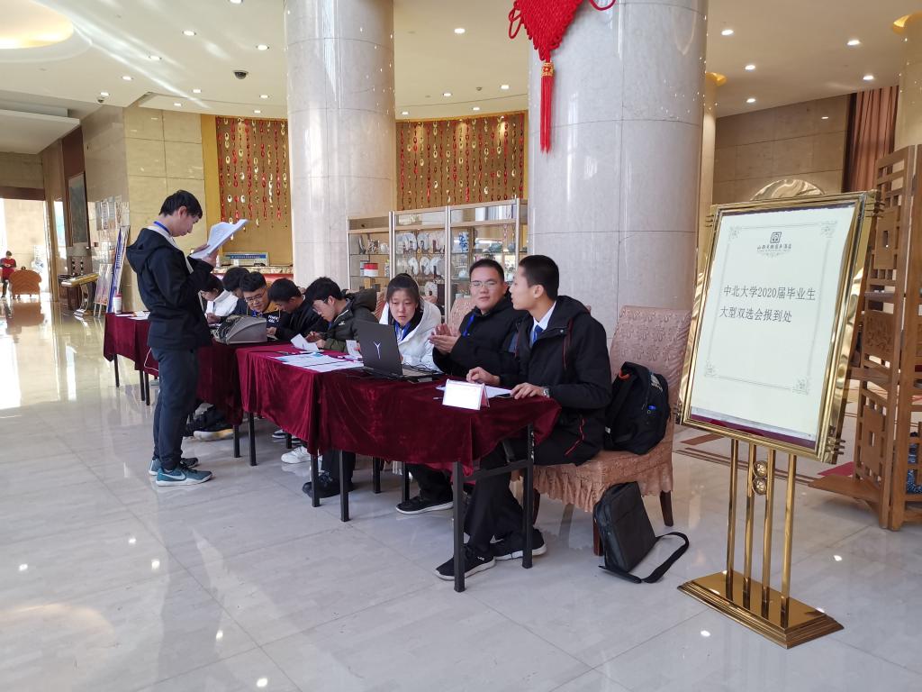就业部一行十二人在学院就业辅导员魏春燕老师的带领下来到此次双选会单位接待地点——太原市天瑞商务酒店。到达酒店后,同学们整理好相关物品,迅速进入工作状态。在工作中,同学们认真、负责的做好登记,并耐心、细致的为用人单位做讲解。期间,校招生就业处副处长刘宝华,招就处安美荣老师来到酒店,询问单位报到情况,现场解决问题,并对同学们表示感谢。截止当晚11点半,共接待用人单位一百余家!