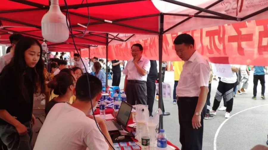 探花社区 校长沈兴全、校党委书记李忠人一行也到达了大本营,亲切慰问现场的迎新工作,看着不断到来的新同学和认真工作的志愿者,他们的脸上露出了满意的笑容。