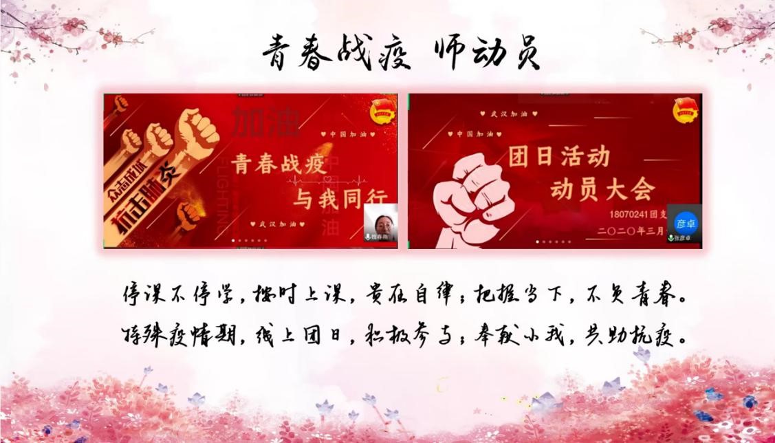 伴随着庄严郑重的团歌,凝视着鲜红舞动的团旗,这次特殊的线上团日活动答辩正式开始。