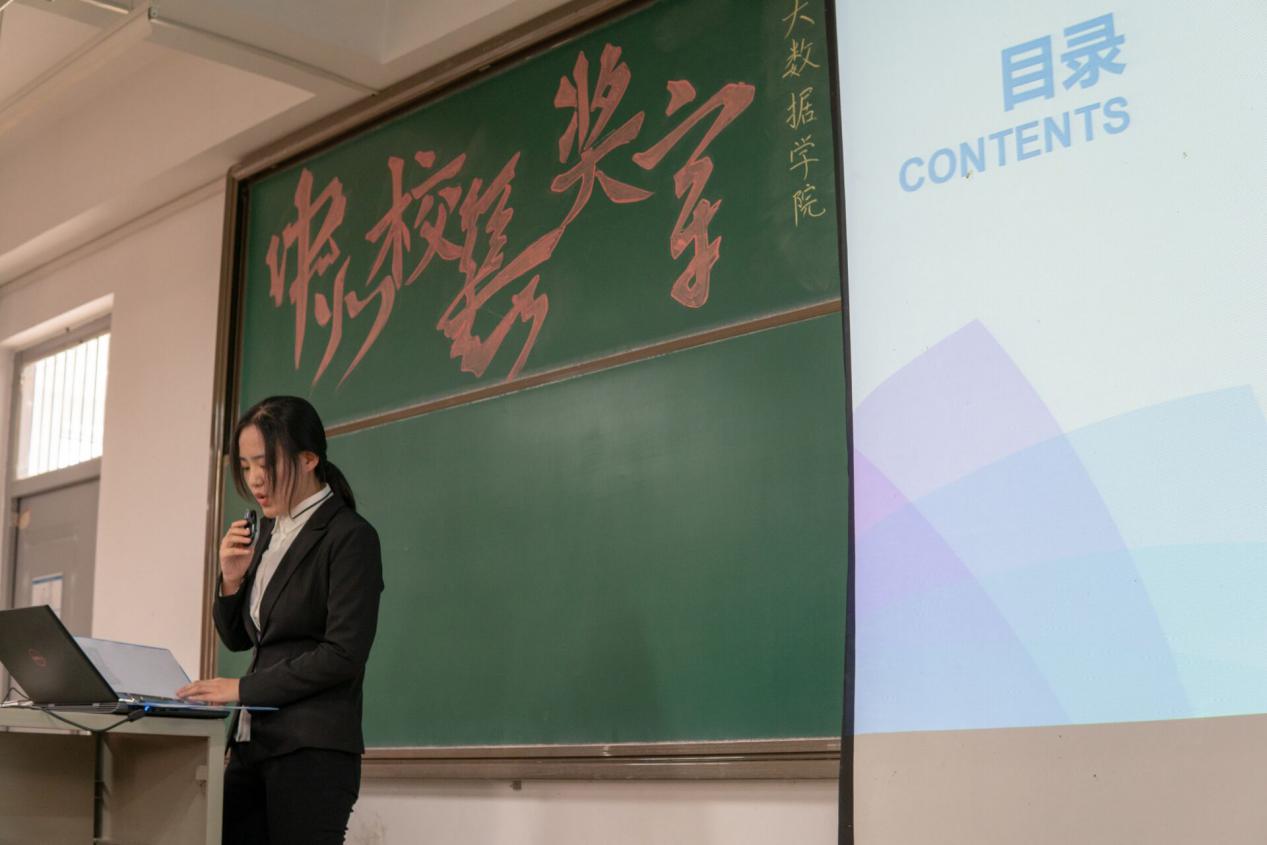首先进行的是校长奖章答辩,由句亚莉和彭瑞两名同学参加。在主持人介绍了答辩要求和规则后,参加答辩的同学开始了自我展示与现场答辩。