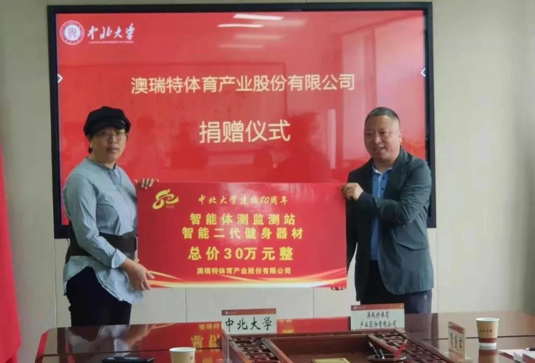 捐赠了澳瑞特公司畅销的室外智能体测站、二代健身路径器材等数台。