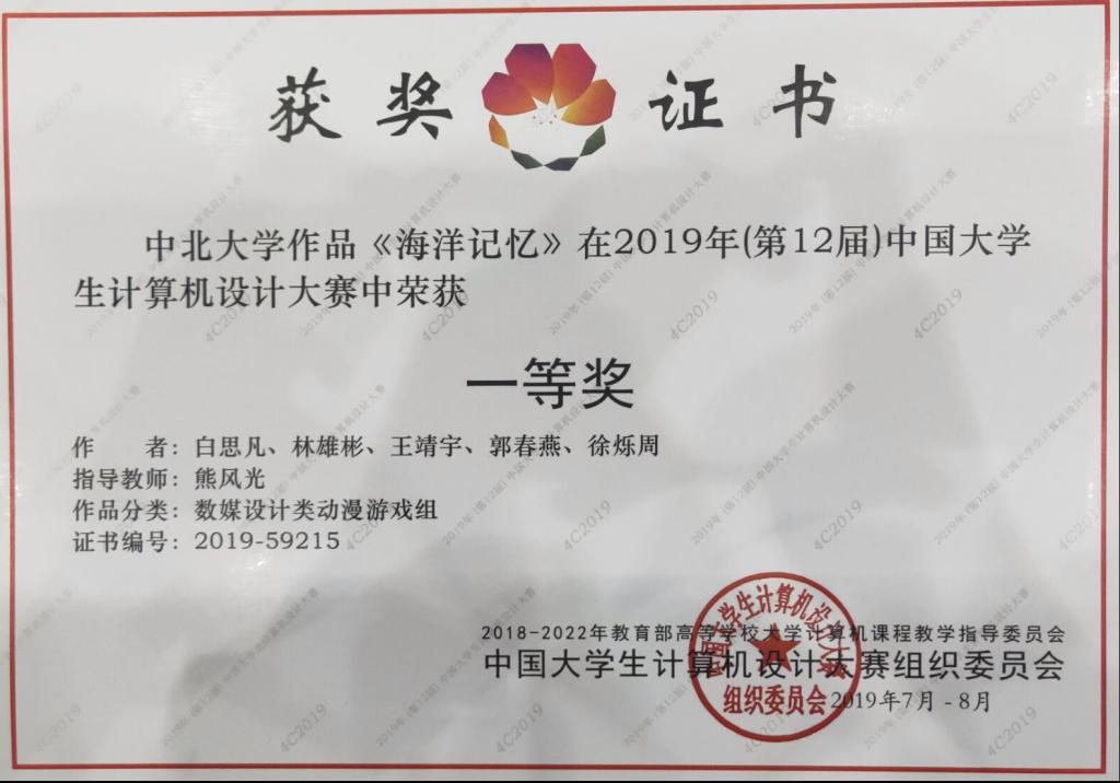 在今年6月份的省赛阶段,实验室共有6组作品入围,5件作品获奖,参赛赛道涵盖数媒动漫游戏类、数媒微电影类等。其中,白思凡、林雄彬等同学的《海洋记忆》获省级一等奖,温占卿、周渝峰等同学的《海底宫殿之旅》获省级二等奖,张晓文、张浈宇等同学的《亚特兰蒂斯计划》获省级二等奖,白思凡等同学的《山河之歌-晋剧》获省级二等奖,张鸿伟、闫成敏等同学的《深海的抉择》获省级三等级。