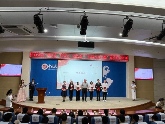 本次竞演讲述活动自五月上旬开展,100余名同学报名参加。经过初赛复赛选拔,共有10名同学进入决赛。汾河边的老红军、身边的共产党人、《觉醒年代》观后感、抗美援朝中最可爱的人、感人至深的革命故事……选手们通过一个个红色故事,将党波澜壮阔的百年历史融入到了演讲中,用历史事实说服人,用革命事迹感染人。张梦溪同学在讲述中说:“一个时代一个挑战,一部百年壮丽党史就是一部艰苦奋斗的移山史,我们青年要敢于做先锋,不做过客,不当看客,奋斗才是青春最亮丽的底色……”孙宇飞同学说:“以远大理想确定人生航向,让生命的深度和宽度都得以延续和发展。”李嘉琪同学说:“赤旗飘扬百年,热血毅然滚烫。奋斗拼搏成为了历史,又化作现在。一代人有一代人的长征,一代人有一代人的担当。”……同学们热血沸腾的演讲打动着在场每一位师生的心灵,激发了强烈的爱党爱国荣誉感和情怀,让观众深刻领悟了党的百年奋斗历程和不变的初心使命。