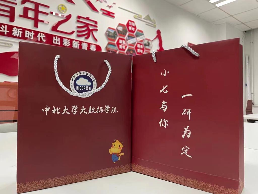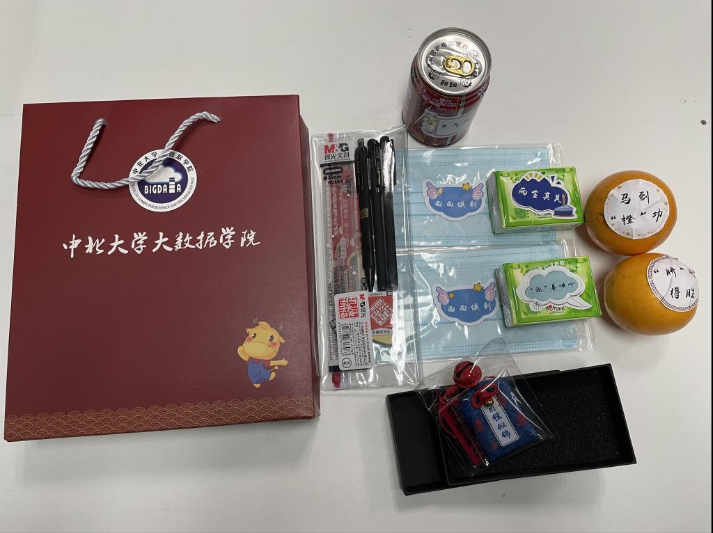 考研大礼包里面有:考研文具、脐橙、牛奶、纸巾、挂件等考试必须品和生活用品,饱含“脐”开得胜,马到“橙”功,牛气冲天,“面面”俱到、成功上岸等美好寓意。加油包的独特外部设计是由学院保研同学设计完成,并由班主任和低年级的同学一起完成贴标和装袋,包装上印有的“小七与你一’研’为定”,寓意着学院领导、老师对同学们的殷切期盼。
