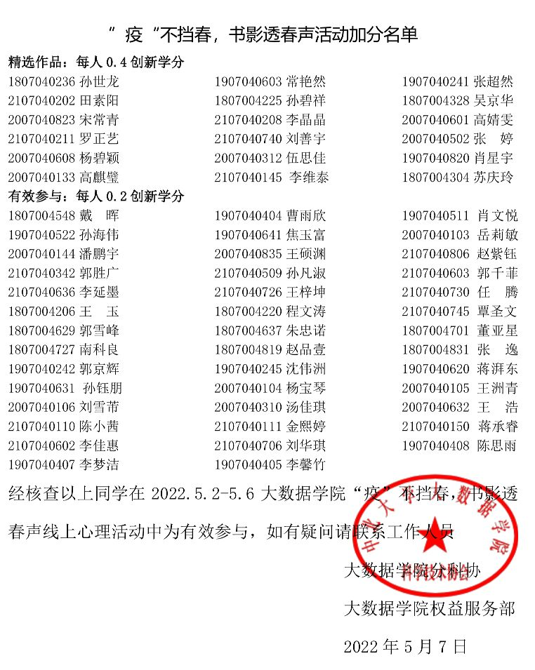 5月7日上午,经过分科协和权益服务部的工作人员核查后,共有18名同学的投稿被选为精选作品,41名同学的投稿认定为有效投稿。