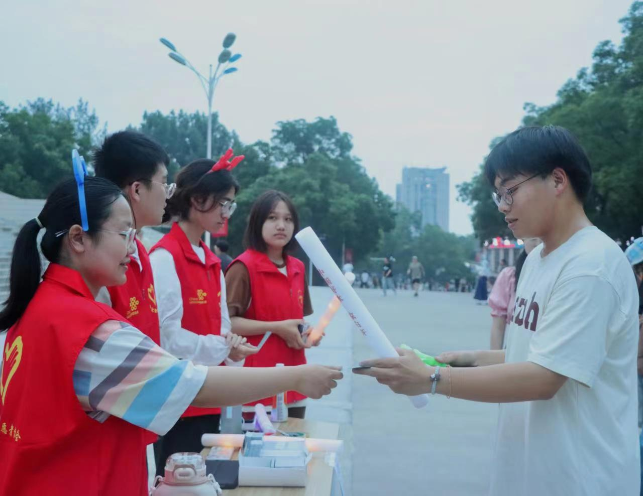 第五届“筑梦荧光跑,青春砥砺行”荧光夜跑于瑾瑜国际会议中心广场隆重举行,出席本次活动的嘉宾有校团委书记魏翀老师、探花社区